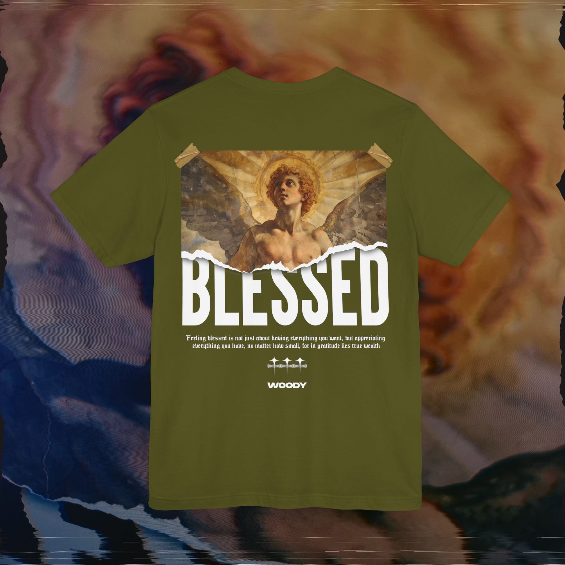 This tee is a reminder to slow down and give thanks. Featuring a powerful angelic visual torn between the heavens and bold modern typography, BLESSED speaks to the soul. Whether you’ve fought your way to peace or are still on the path, this design honors the strength it takes to be grateful in the chaos.